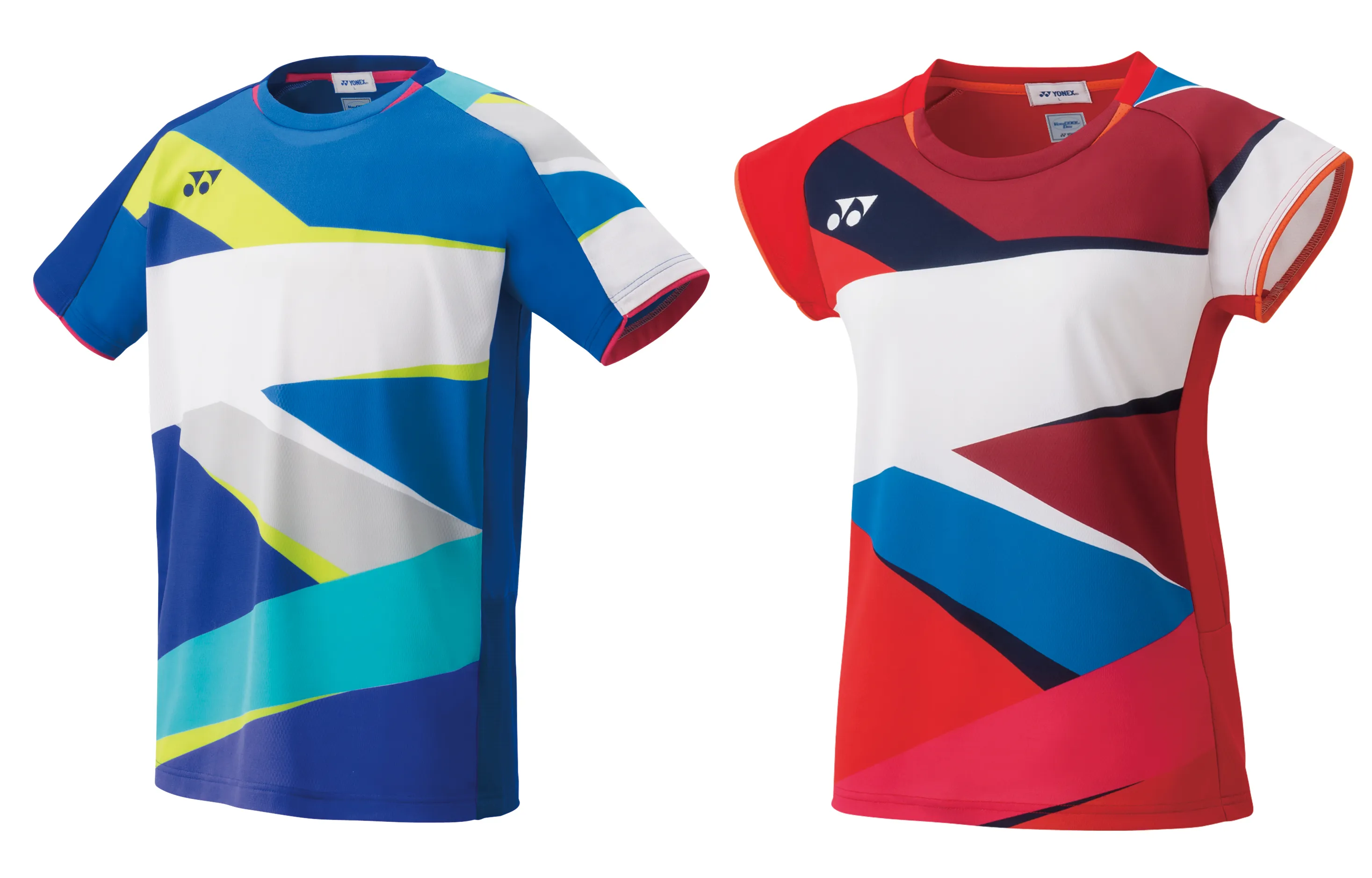 [左]メンズ ゲームシャツ(ブラストブルー) [右] ウィメンズ ゲームシャツ(サンセットレッド)