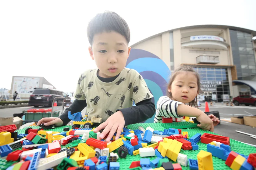 ブロックで遊べるスペース、ARを使った写真スポットが常設されています。
