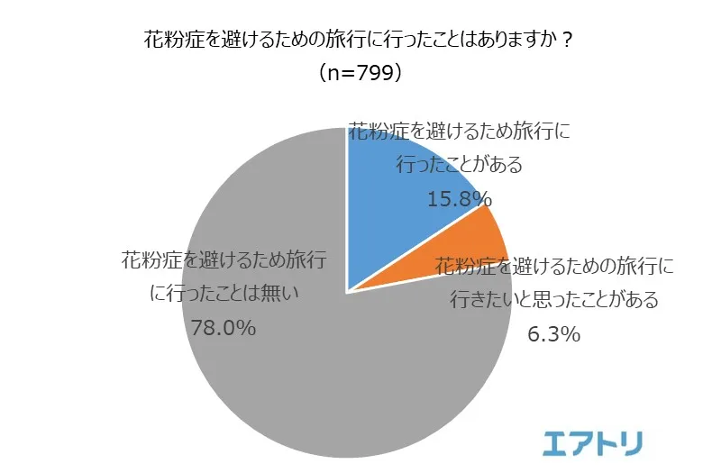 総合旅行プラットフォーム「エアトリ」(https://www.airtrip.jp/)を運営する株式会社エアトリ(本社:東京都新宿区、代表取締役社長:吉村 英毅、以下エアトリ)は、10代~70代の男女799名を対象に「花粉症からの逃避行」に関する調査を実施しました。