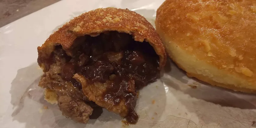 二俣川店がオープンするのに合わせて開発された二俣川店舗の限定品です。一口目でたどり着くお肉の大きさは驚くほどで、食べ応え抜群です。店舗でも大人気のステーキカレーパンを是非お試しください。