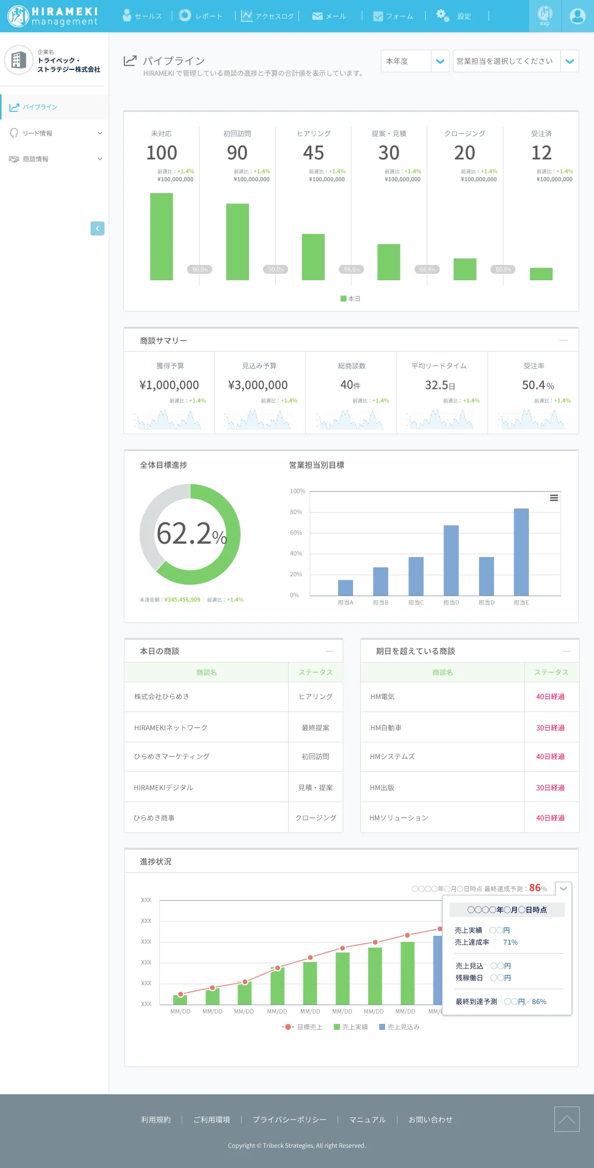 1. 新規開拓、営業管理、顧客管理をひとつのツールで実施可能