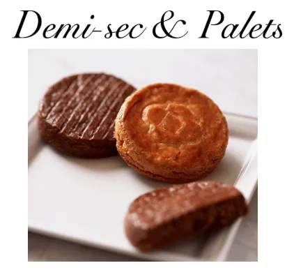 厳選した素材を使い、風味豊かに仕上げたドゥバイヨルの焼き菓子「ドゥミセック」と「パレ」。四角い形が可愛らしいドゥミセックは、ショコラ、ヴァニーユ、ピスターシュの3つの味わいで新登場。サクッとした食感が特長のパレは、芳醇なバターの香りのブールとショコラの2つの味わい。手作りならではの素朴な口当たりと素材の味わいをお楽しみください。
