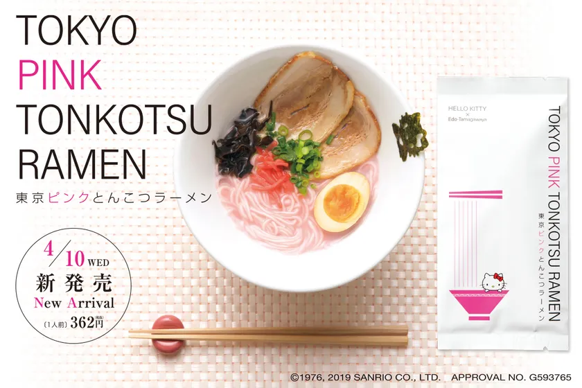 玉川食品株式会社(本社:東京都北区、代表取締役:関根 康弘)は、株式会社サンリオのキャラクター「ハローキティ」とコラボした、麺業界初となる、めんもスープもピンク色の「TOKYO PINK TONKOTSU RAMEN 東京ピンクとんこつラーメン」を2019年4月10日に発売することをお知らせいたします。