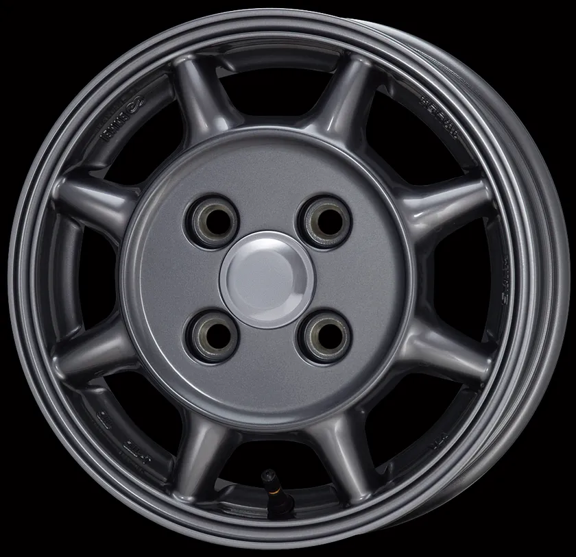 デザインは応力分散に優れた8本のマルチスポークを基本に、センター周りのディッシュ部を大きく、軽商用車用アルミホイールとして十分な強度と、ホイールを換える事が楽しくなる様なポップなカラーリングに仕上げました。