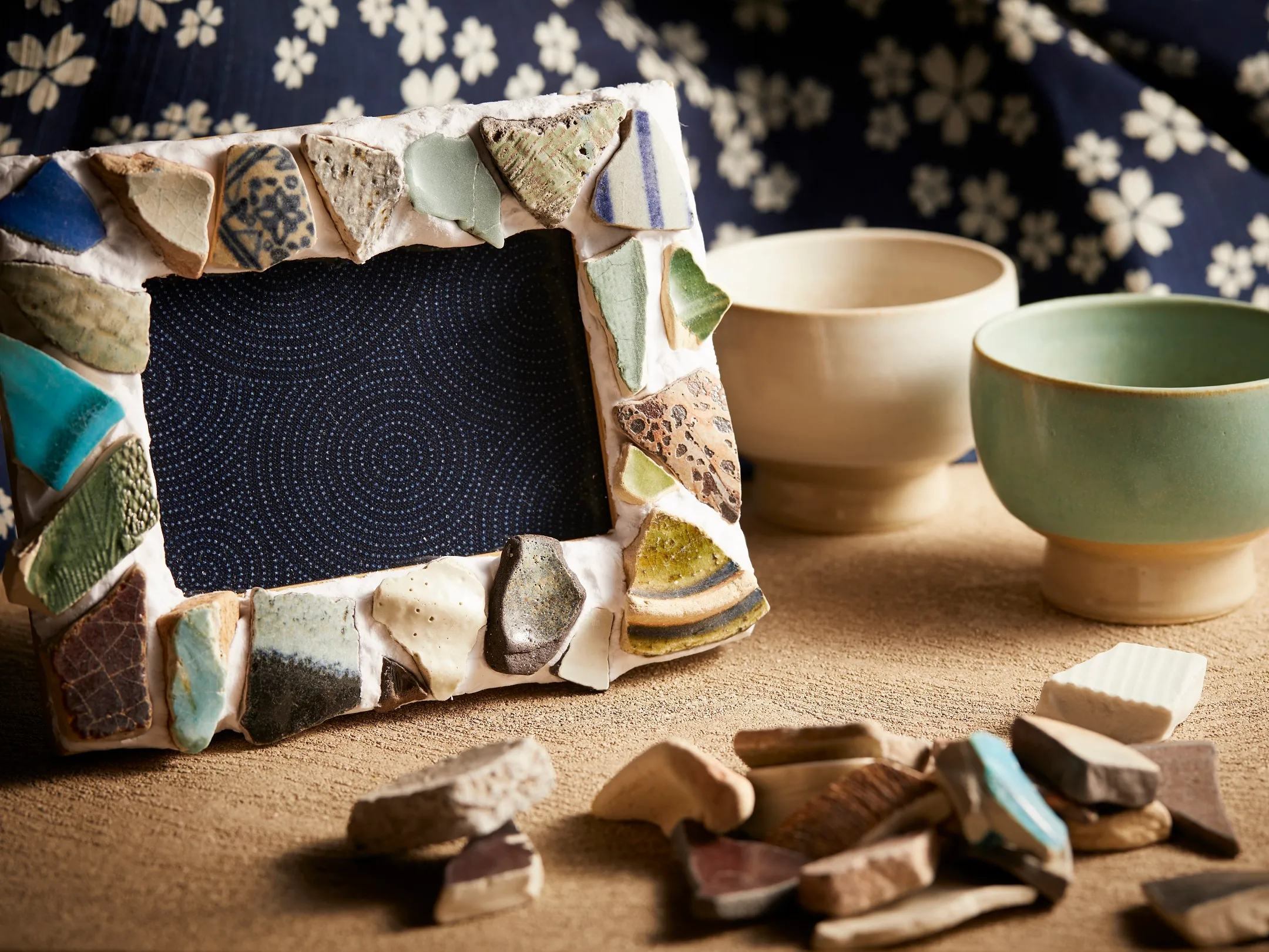 界 鬼怒川では、栃木の民藝品・益子焼を使ったフォトフレーム作り体験と、いちごのティーセットを堪能する「とちぎ民藝に親しむ母娘語らい旅」を提案します。益子焼はあたたかみのある形と釉薬が特徴の栃木を代表する焼き物です。その益子焼のかけらをフレームに貼り付け、オリジナルのフォトフレーム作ります。