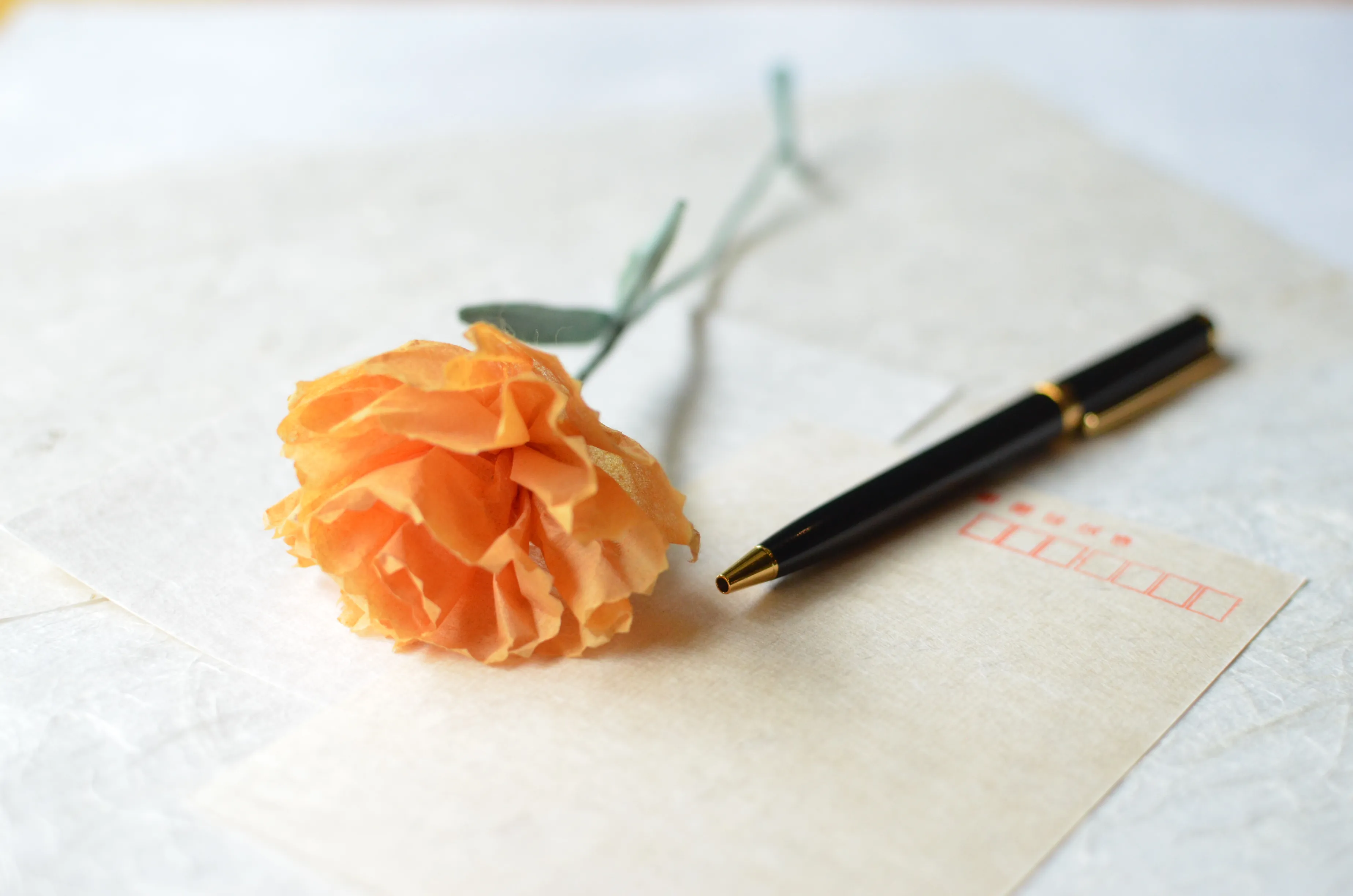 古き良き日本の佇まいを残す純和風の客室には、石州和紙のレターセットをお部屋にご用意します。石州和紙は1300年の歴史を持ち「日本一丈夫な和紙」と称され、1000年保つ良質なつくりです。日頃の感謝をしたためた手紙をフロントでお預かりして、後日それぞれの住まいに郵送します。顔を合わせては伝えづらい感謝の想いを届けます。夕食の最後に、娘から母へ石州和紙の花をプレゼントをします。日本一丈夫な石州和紙で変わらぬ感謝を伝えることができます。