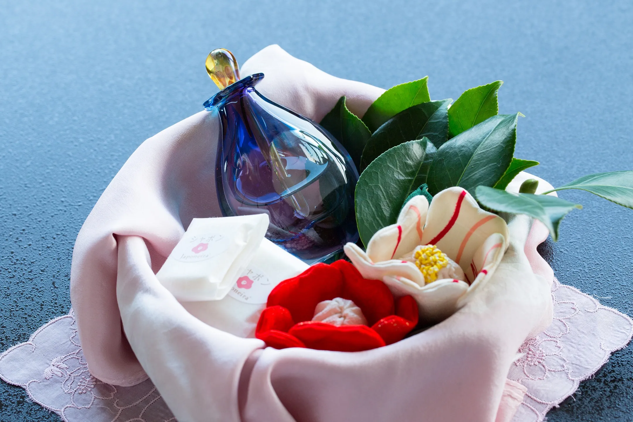 伊東の市花「椿」の語源は、厚みがあり光沢のある葉を持つことから「艶葉木(つやばき)」といわれています。界 伊東が提案する「椿美人滞在」は、髪の先から爪先まで艶やかな女性を目指すプランです。美肌の湯にゆっくりと浸かり、世界三大オイルの一つとされる椿油の絞り体験や、椿のローションやクリームなどのアメニティで入念なケアを行うことができます。翌日は椿の花びら染めで作った薄紅色のスカーフを互いに送り合い、身につけて椿美人の誕生です。