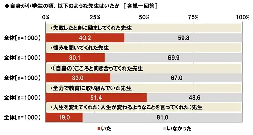 ◆5人に1人が「自身が小学生だったとき、人生を変えてくれた先生がいた」と回答