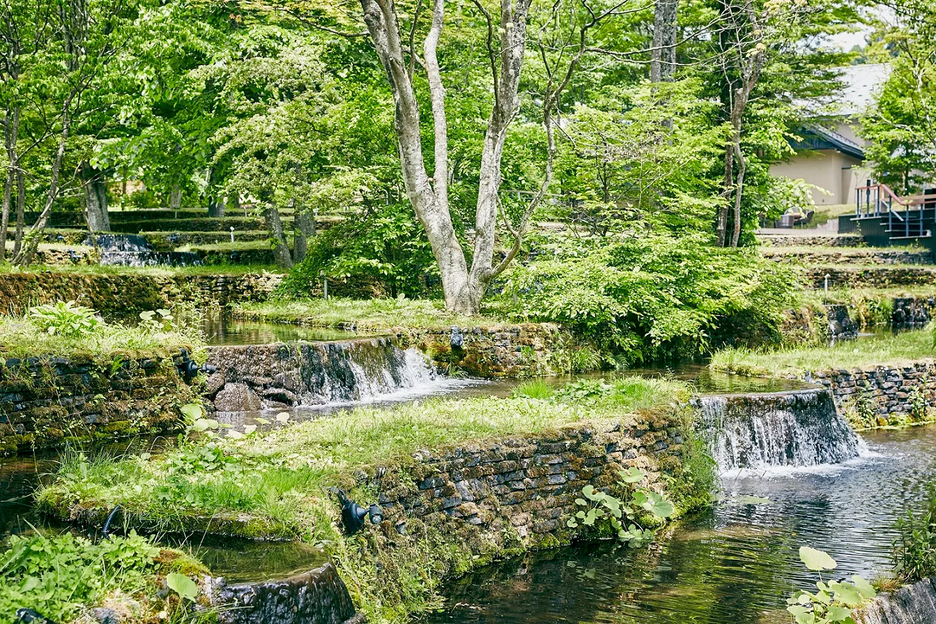 現代を休む日、谷の集落に滞在する。澄んだ空気に包まれた「山あいの理想郷」と表現すべく、離れになった客室は水辺を囲み、部屋のテラスから四季折々の景色をのぞめます。