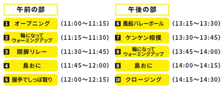 高田選手は「みんなと一緒に楽しく盛り上がっていきましょう!」と話し、「ケンケン相撲」や「島おに」などで子どもたちとともに汗を流しました。