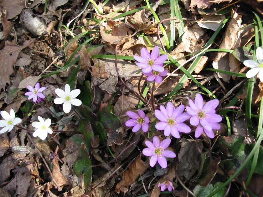 ■色とりどりの雪割草が一面に咲き誇る、猿山岬