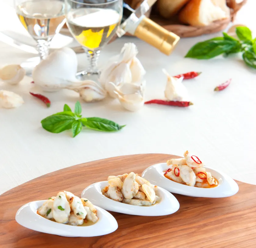 ふぐの身はプリっとした食感を残しつつ、独自の製法で味を整え、特製オイルに漬け込みました。味はガーリック味、ガーリック・レッドペッパー味、バジル味の3種類です。オイル漬はお酒のおつまみとしての相性はもちろん、さまざまな料理にアレンジできます。家での晩酌やホームパーティー、女子会など、さまざまなシーンで活用していただきたいです。