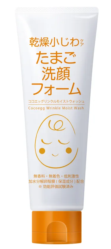 本商品は卵由来の天然成分「卵角膜エキス」配合化粧品の第5弾となる「乾燥小じわケア用洗顔フォーム」です。汚れをすっきり落としながら、しっとりみずみずしい肌に保ち、乾燥小じわを目立たなくします。無香料、無着色、低刺激性、アルコールフリー、オイルフリー、効能評価試験済、パッチ試験済。