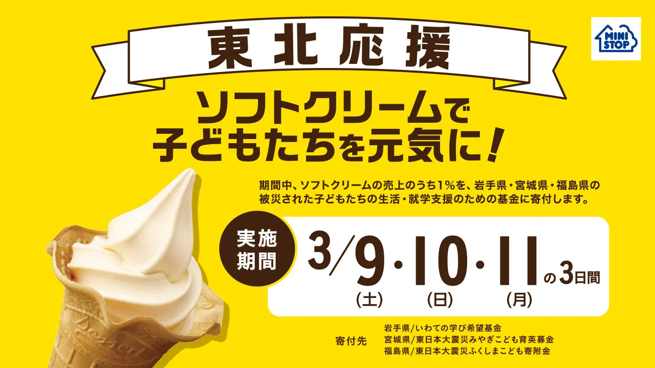 今年も東北を応援します! 「ソフトクリームで子どもたちを元気に!」 キャンペーン ~全国のミニストップ店舗にて 3月9日(土)から3日間~