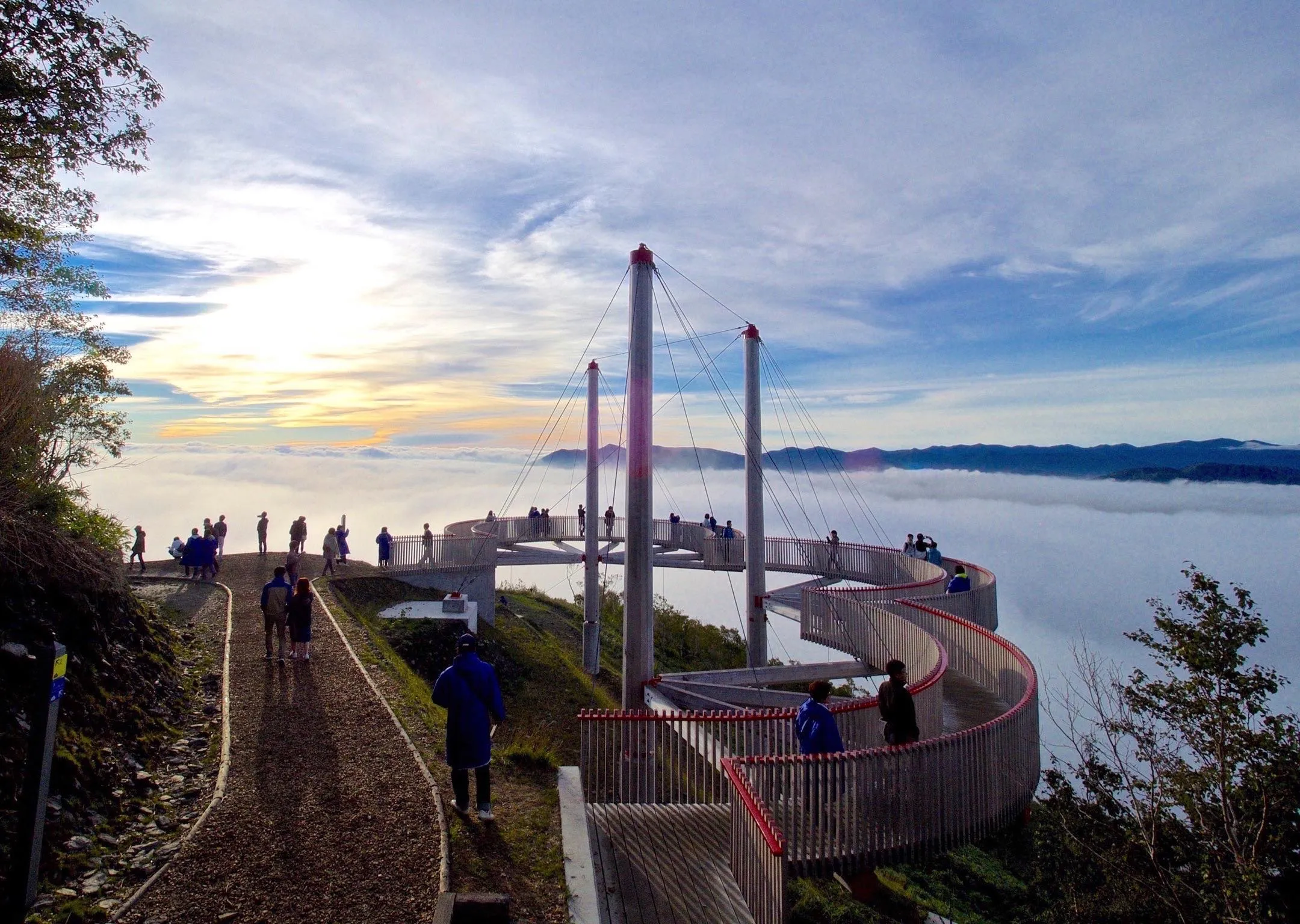 雲海テラスでは、雲の上での絶景や体験を楽しみ尽くせるよう、雲海テラスでの9つの過ごし方を提案する「Cloud9(クラウドナイン)計画」を進めています。雲の上を歩くような体験ができる「CloudWalk(クラウドウォーク)」など6つの展望スポットをこれまで設置してきました。この計画は英語で「Iam on cloud nine.」が「この上ない幸せ」という意味であることから、Cloud9計画と名付けられました。大自然を9つの方法で楽しむことにより、この上ない幸せを味わっていただきたいという思いを込めています。