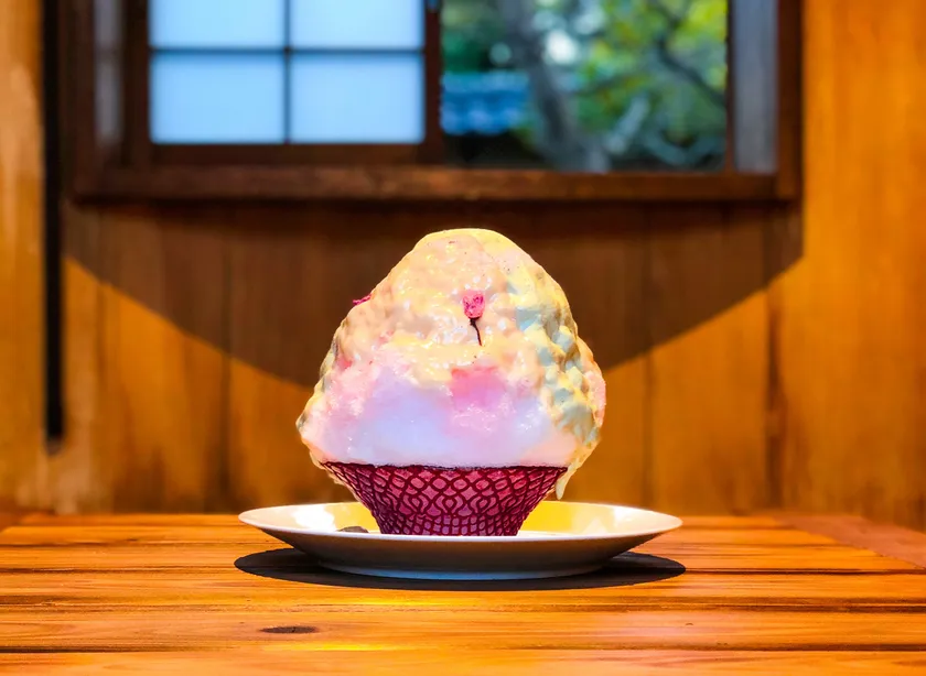 桜葉とみりん粕のダブルクリームかき氷