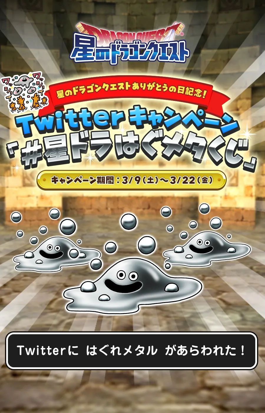 『星のドラゴンクエスト』 Twitter「#星ドラはぐメタくじ」キャンペーンについて