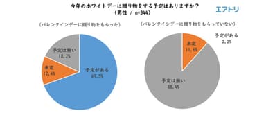 バレンタインデーに贈り物をもらっていない男性で、ホワイトデーに「贈り物をする予定がある」と回答した人はいませんでした。