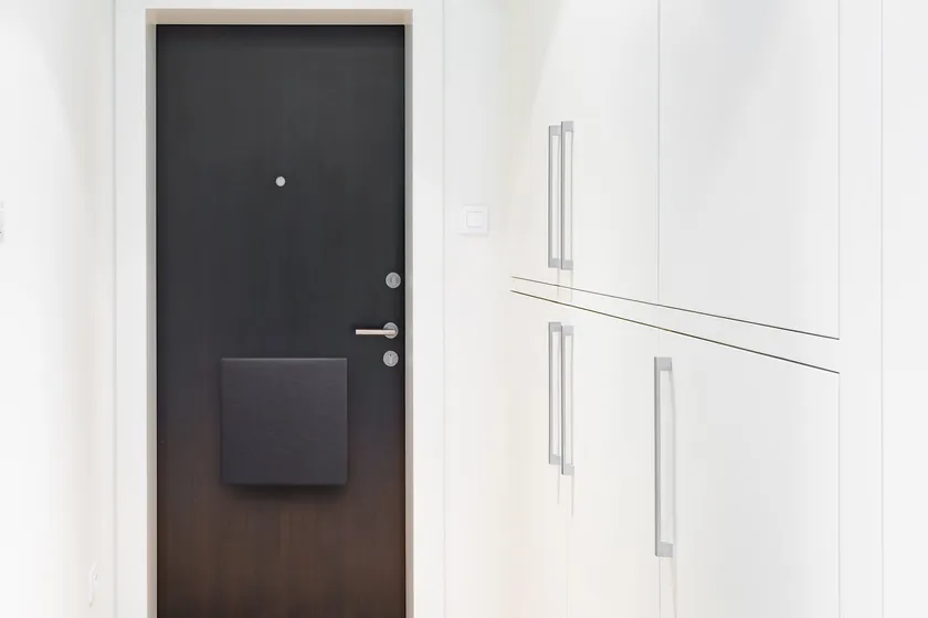 【玄関スチールドアに磁石で取りつける防災バッグ】