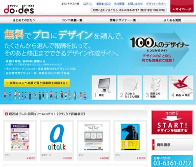 『do-des』には100人以上のプロデザイナーが登録しており、企業ロゴやキャラクターから名刺、カタログ、広告にいたるまでの多様なデザインを無料で提案し、採用時に初めて報酬が発生するという、全く新しいシステムのデザインサービスです。