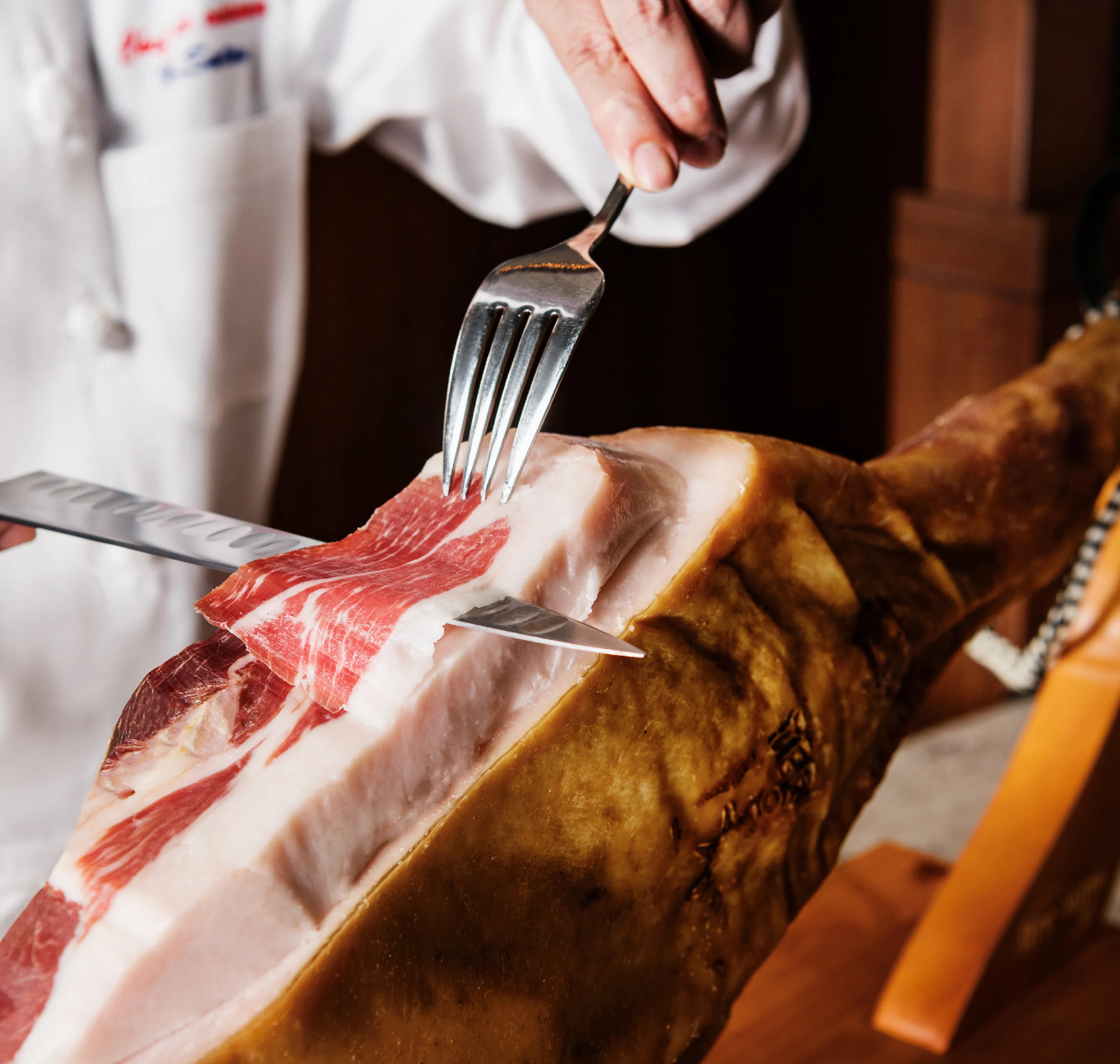 【目の前で切り出す】生ハムのカッティングサービス ホワイトアスパラのピクルスを添えたサラダ仕立て