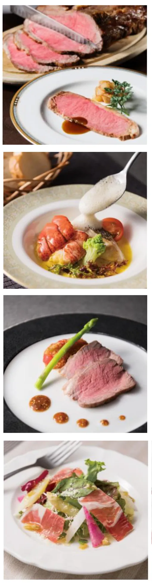 ディナーでは、旨味が詰まった「オマール海老と鯛のひと皿」や「仔羊のグリエ」から、その場で切り出す生ハムとサラダを混ぜ合わせる出来たてのオードブルまで。ソースや岩塩などの調味料(8種)をお好みで楽しめる人気の「ローストビーフ」も登場します。