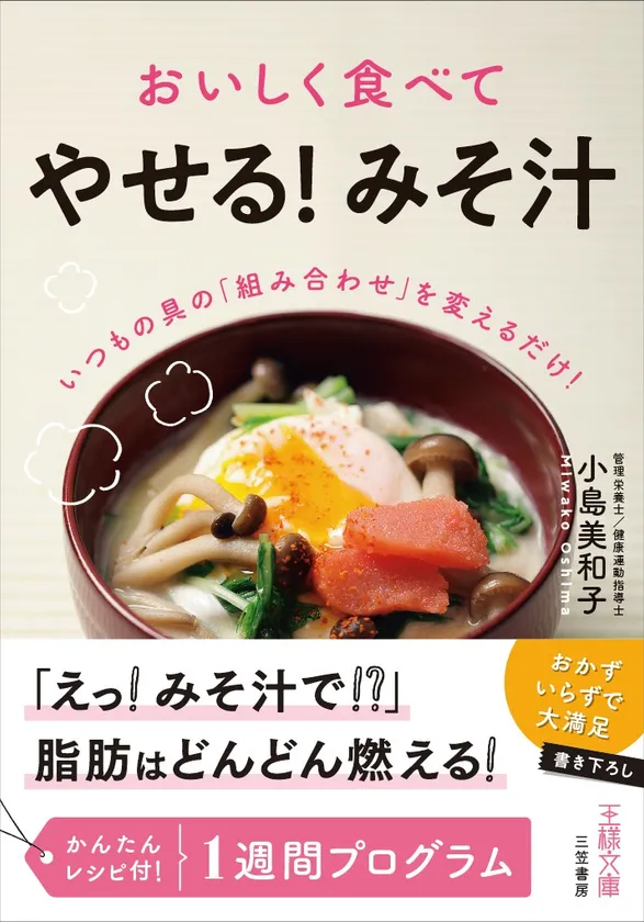 保健指導、健康サービス・コンテンツ企画開発、健康経営・ライフスタイル提案事業を行う有限会社クオリティライフサービス(所在地:神奈川県小田原市、代表取締役社長:今川 博喜)は、疲れている働く女性に、いつもの具の組み合わせを変えるだけの、主菜も副菜もかねる具だくさんみそ汁を食べることで、無理のないダイエットだけではなく、安定したこころとからだの余力を手に入れ、人生を輝かせるヒントになる書籍、管理栄養士 小島美和子著『おいしく食べて「やせる!みそ汁」』を、三笠書房・王様文庫より2019年3月14日に発売いたします。
