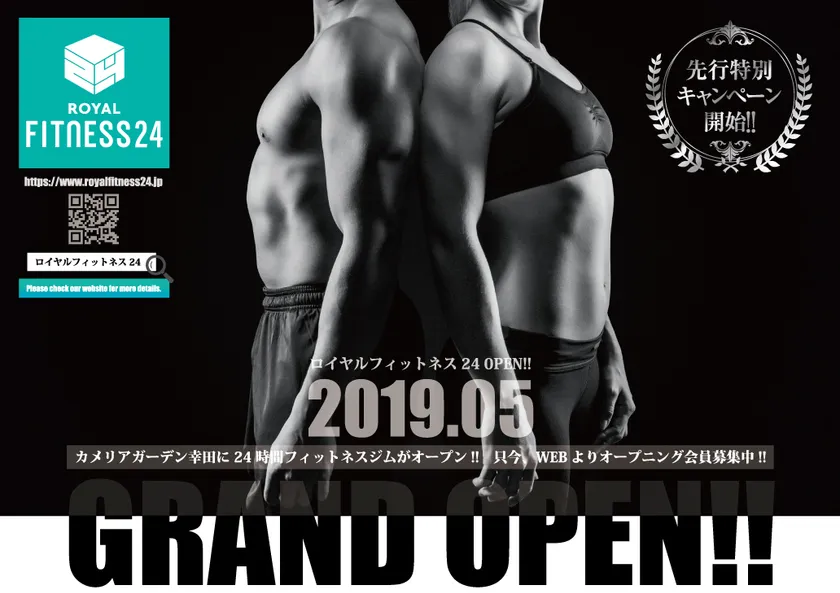 愛知県岡崎市にロイヤルスポーツクラブやゴルフ練習場などを、複数店展開する、株式会社エクセントロイヤル(本社:愛知県岡崎市大平町川田46-1、代表取締役社長:牧 功)は、24時間営業のフィットネスジム『ロイヤルフィットネス24』を、愛知県額田郡幸田町にある商業施設・カメリアガーデン幸田敷地内に、2019年5月30日(木)オープンいたします。