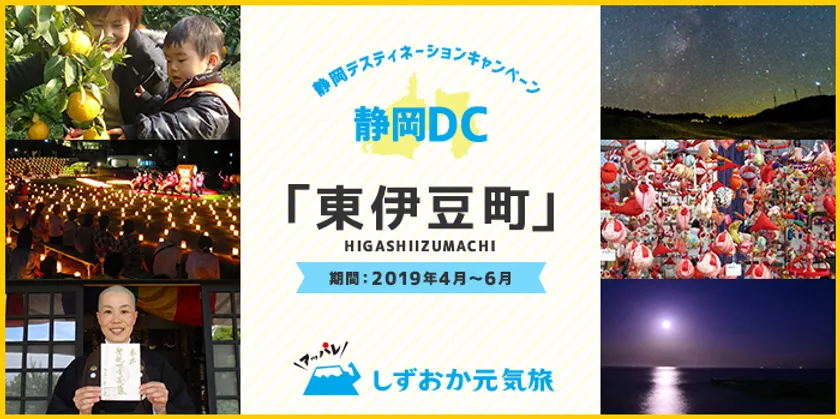 一般社団法人 東伊豆町観光協会では、2019年4月1日(月)~6月30日(日)の「静岡デスティネーションキャンペーン(静岡DC)」期間中、様々な企画を実施いたします。春爛漫の東伊豆に、ぜひお越しください。