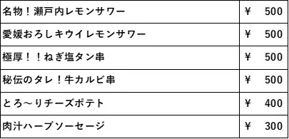 ※出品メニュー、価格は変更になる可能性がございます。