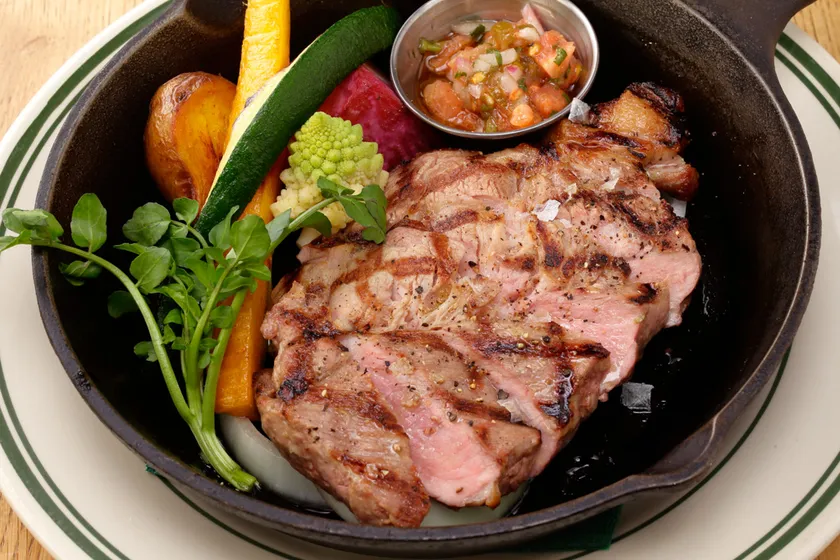 肉汁溢れるハンバーグ・牛肉の旨みがつまった山形県産米沢牛・岩手県産の特選銘柄豚「岩中豚」のグリル・窯で焼きあげるふっくらもちもち生地のピザなど、グリル料理と窯焼きピザが楽しめるお店です。