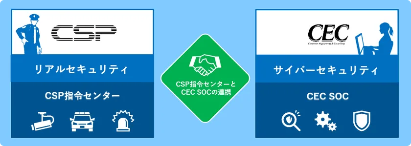 セントラル警備保障株式会社(本社:東京都新宿区、代表取締役執行役員社長:澤本 尚志、以下 CSP)と株式会社シーイーシー(本社:東京都渋谷区、代表取締役社長:田原 富士夫、以下 シーイーシー)は、リアルおよびサイバーセキュリティを統合したソリューションの提供に向け、本日より協業を開始します。