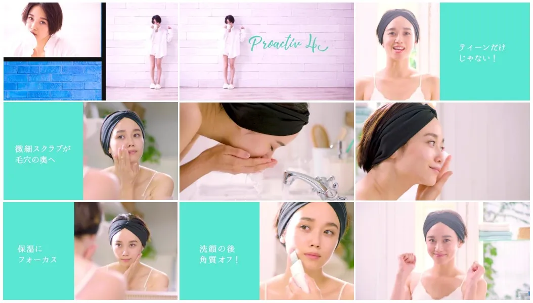 宮城舞さんのナレーションからスタート「プロアクティブはティーン専用じゃありません。大人の肌を考えた4Step.これから使い方を説明します。」