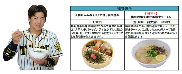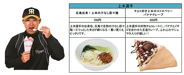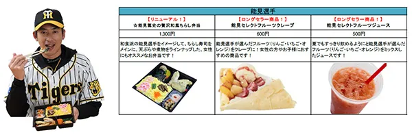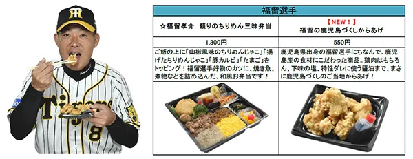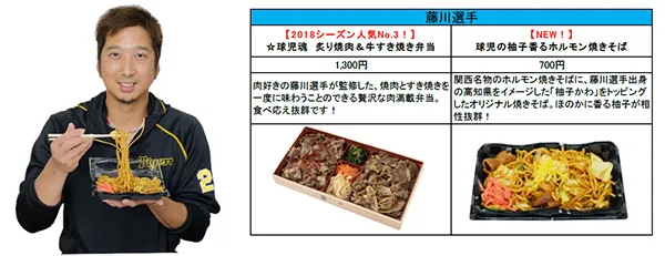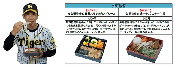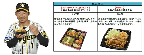 今シーズンは、矢野新監督、糸原新キャプテンのメニューが新たに登場するほか、鳥谷選手・糸井選手・梅野選手・岩貞選手などの主力選手がこだわりのメニューを新たにプロデュース!計18名、30種類以上の充実のラインナップを取りそろえております。