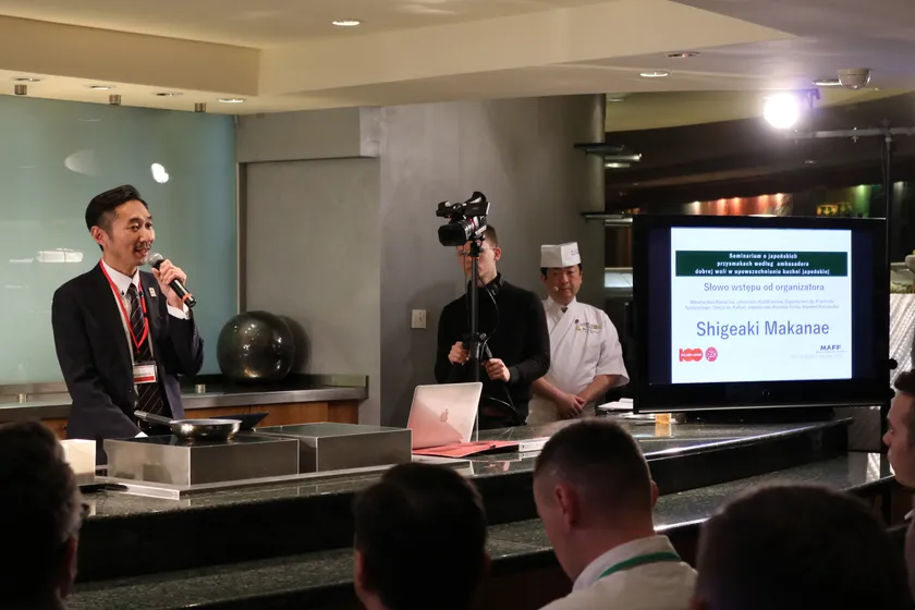 農林水産省は、ワルシャワ(ポーランド)に於いて、欧州で注目の日本産食材を活用した美味しい日本料理の基本が学べるセミナーと、日本とポーランドの交流により、新しい食づくりのヒントを得て頂き、より素晴らしい関係を創ることを目的にしたレセプションパーティーを開催しました。