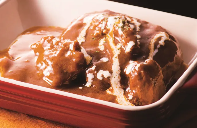 オリジナルブレンドのミンチを使用。千葉県・美笑牛入りのシチューは、赤ワインに野菜と肉の旨みがギュッと詰まった華やかな味わいです。