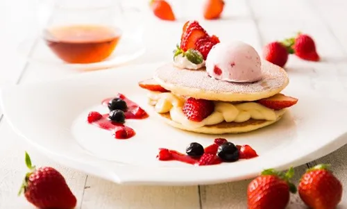 苺アイスと甘酸っぱいラズベリーソースで春の香りいっぱいのスイーツ