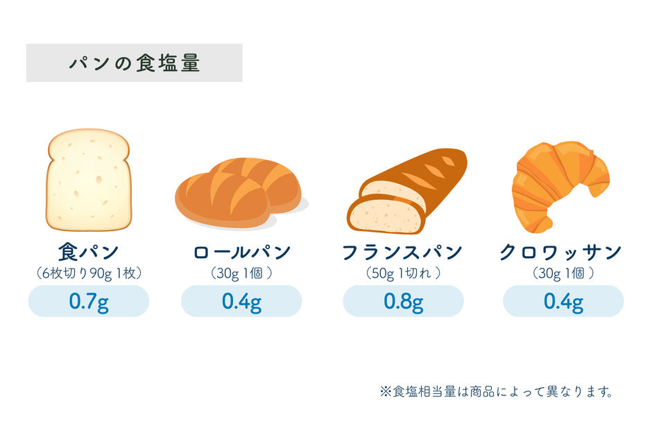 パンは、日本人の食卓に欠かせない身近な食品ですが、実は食塩が多く含まれています。例えば、食パン1枚に含まれる食塩相当量は約0.5g〜1.0gとされており、知らず知らずのうちに塩分を摂り過ぎてしまう一因となっています。パンに食塩が必要なのは、味を整えるだけでなく、パン生地の骨格を形成するグルテンの働きを助けたり、イーストの発酵を調整したりするためです。