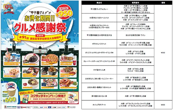 95周年記念グルメとして、第91回選抜高等学校野球大会期間中に次のメニューを販売いたします。