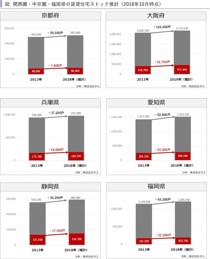 関西圏・中京圏・福岡県の賃貸住宅ストック推計(2018年10月時点)