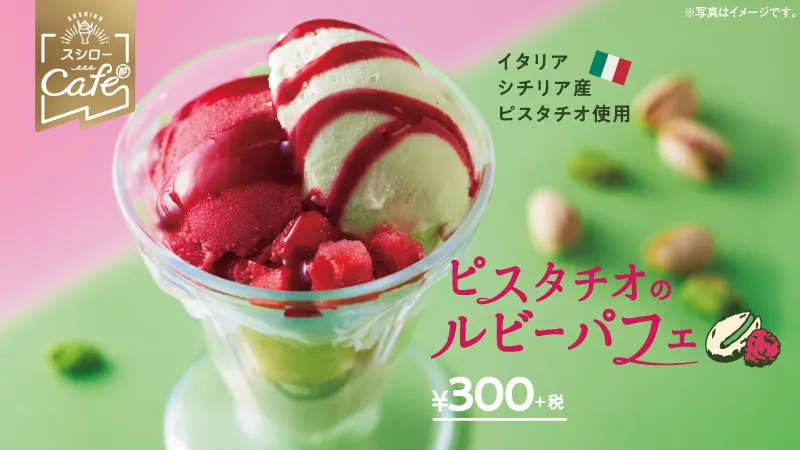 ぜひスシロー初のピスタチオを使用した贅沢パフェをスシロー価格でお楽しみください。