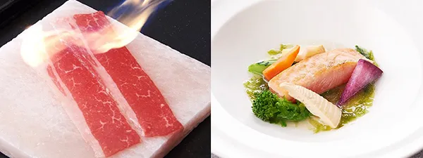 (左)<ランチ>牛肉の岩塩プレート焼き
