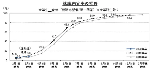 3月1日時点での大学生の就職内定率(速報値)は8.8% ※大学院生除く
