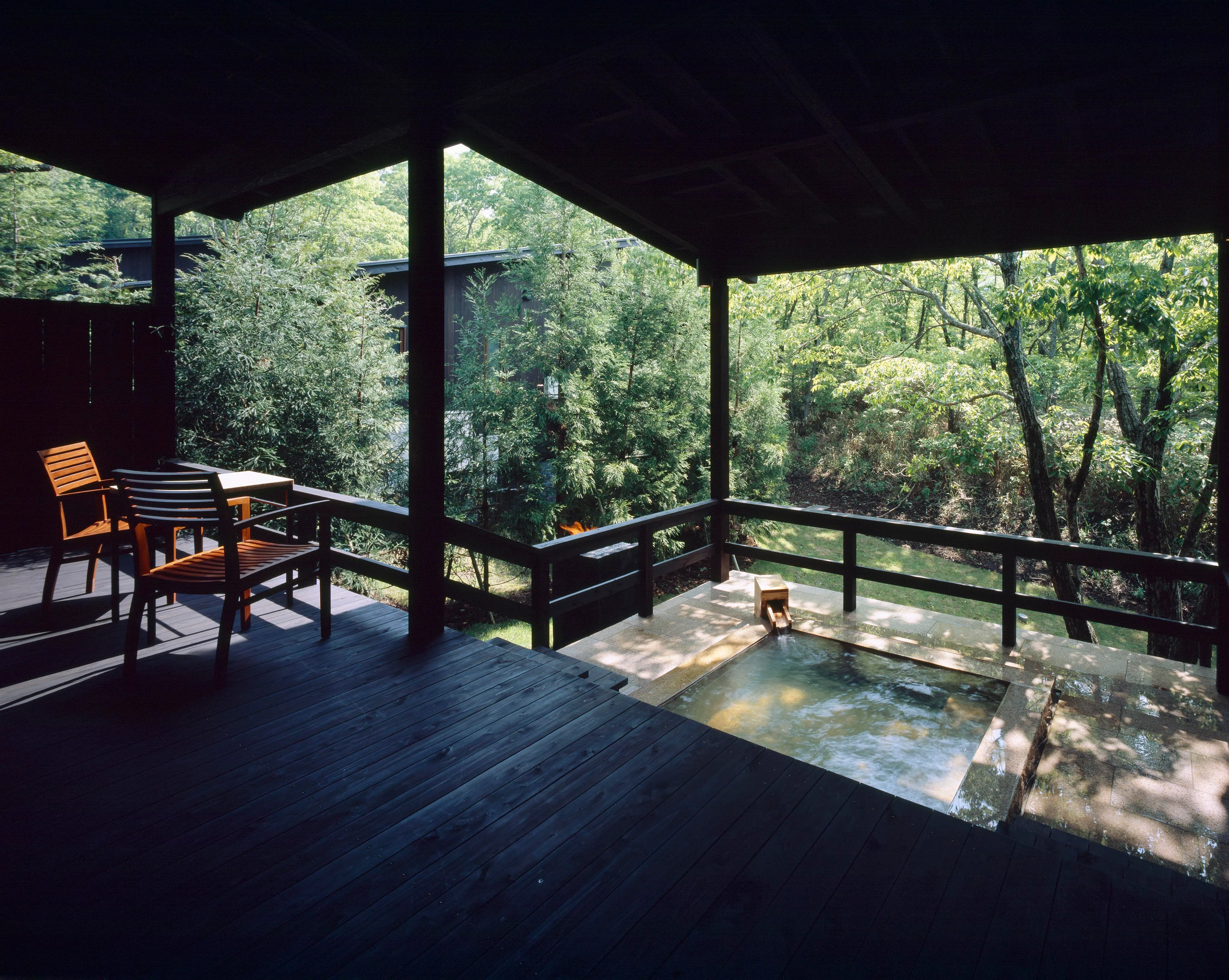 木漏れ日を感じながらの朝風呂は格別です。テラスの湯船に身をゆだね、