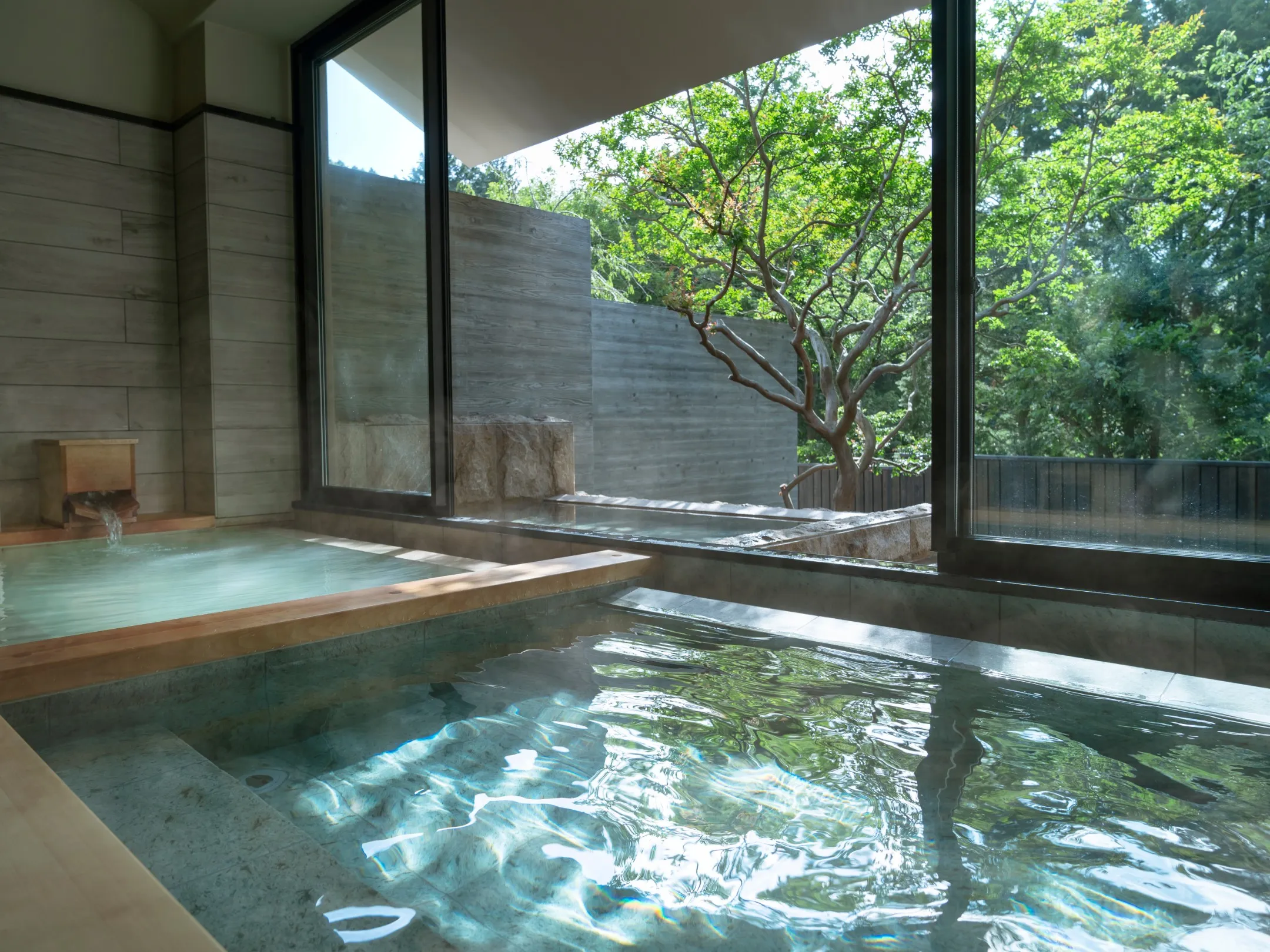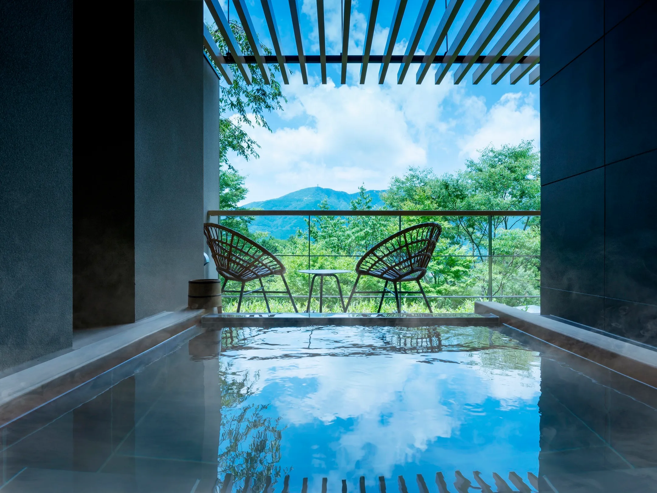 白濁した仙石原温泉を客室露天のプライベート空間でも楽しめます。