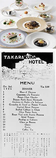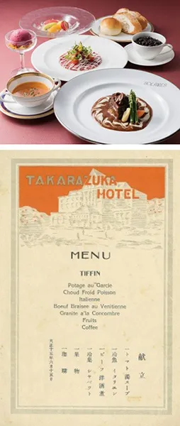 (画像上から)プルミエ 特別コース、開業当時のメニュー