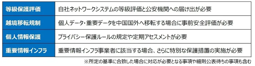 【図】中国サイバーセキュリティ法における要求事項の主なポイント