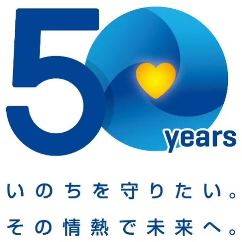 記念アイコンのデザインでは、当社を象徴する「Baxterブルー」で50年間の歴史を、黄色いハートで患者さんの生命と暮らしを守り、これからも守り続けるという私たちの強い意志を表現しています。