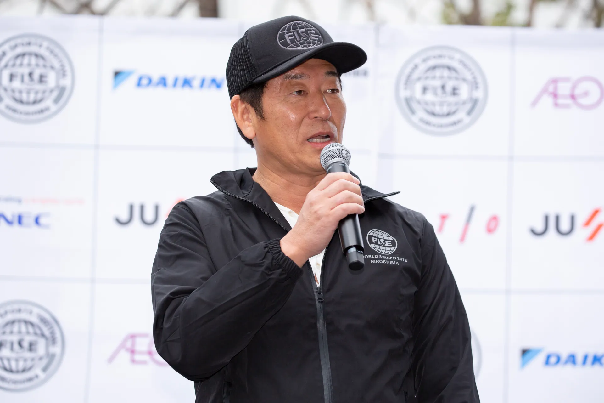 出場選手発表の前にJUSC渡辺守成会長が挨拶をし、「1年前は誰も知らなかったアーバンスポーツの世界大会を広島で初めて開催して、大きな盛り上がりを作ることができた。今後の目標はFISEフランス大会の来場者数である60万人規模を集める大会にしていきたい。最終的には、渋谷のスクランブル交差点でFISE WORLD SERIESを開催したい。SHIBUYA109の壁をボルダリングの選手が登っていく、こういったことができるように、これからもアーバンスポーツを盛り上げていきたい。」と挨拶しました。
