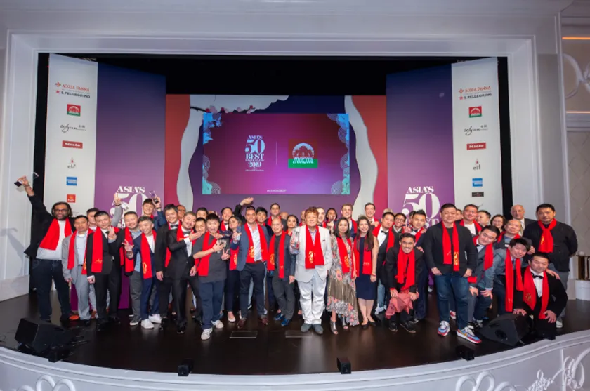 第7回「アジアのベストレストラン50」の表彰式で喜びを分かち合う受賞したシェフ達